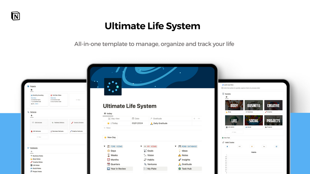 Take charge of your life with the Ultimate Life System: the all-in-one, AI-powered workspace that organizes every part of your day. Say goodbye to stress and overwhelm.